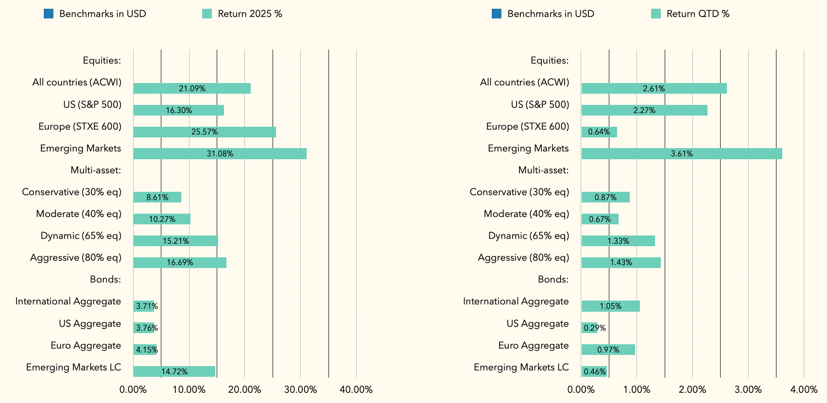 Overall year to date, we are still comfortably ahead of all benchmarks, and our multi-asset strategy portfolio is up +23.8% for 2025 YTD (vs equity benchmark +21.1% and bonds +3.7%). Our commodities allocation played a major role in this.